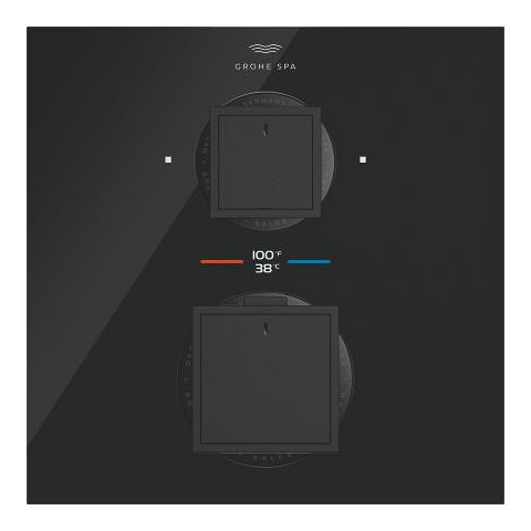 The Allure Gravity series from GROHE inspires with its extraordinary aesthetics and elegant materiality. Precise lines and a clear design language lend it a classic elegance and timeless style. Thanks to the variety of different colours and materials, there are almost endless combination possibilities - to suit your personal preferences! This shower thermostat with 2-way diverter impresses with its elegant appearance and smart functions: With GROHE's thermostat technology, you can experience unadulterated relaxation, protect the environment and enjoy all-round protection. Temperature fluctuations are a thing of the past - even with significant changes in water pressure. The temperature control offers safety: the water temperature can only be set higher than 38 °C by unlocking it at the touch of a button. A second scald protection can be installed at 43 or 46 °C if required. The 2-way diverter allows you to easily regulate the amount of water for the hand shower and head shower with a single rotary knob. The Phantom Black surface is stylish and hard-wearing. Here you will find the ideal cover plates that we recommend for the shower thermostat with 2-way diverter:* The matching concealed body (GROHE Rapid SmartBox 35600000 or 35604000) must be purchased separately. * Use of the product without a cover plate is not recommended. GROHE Allure Gravity – Feel the power of attraction